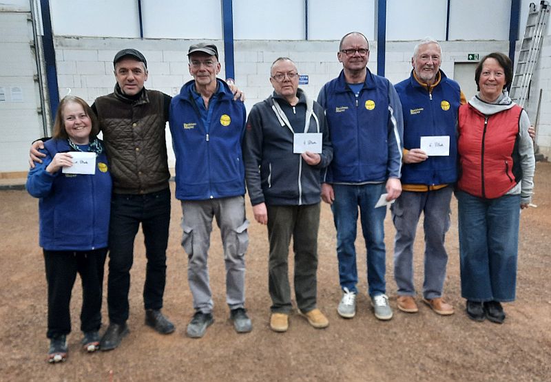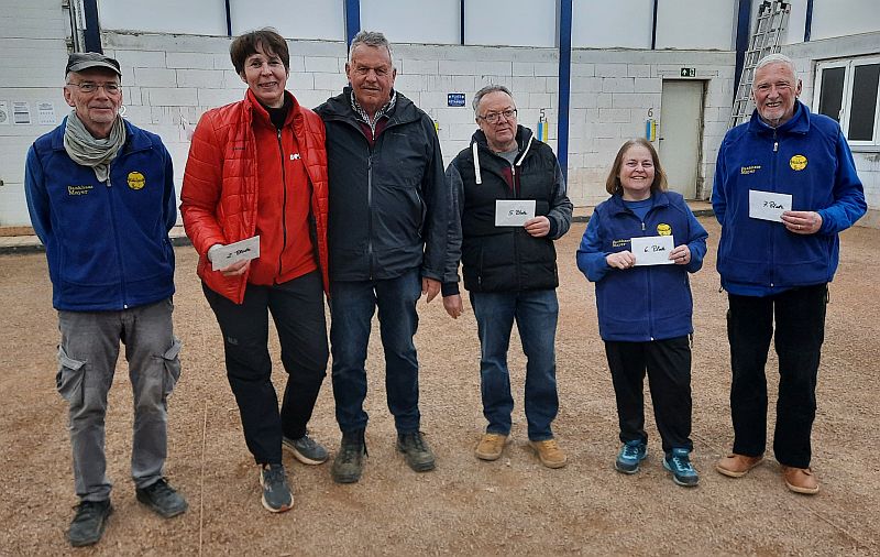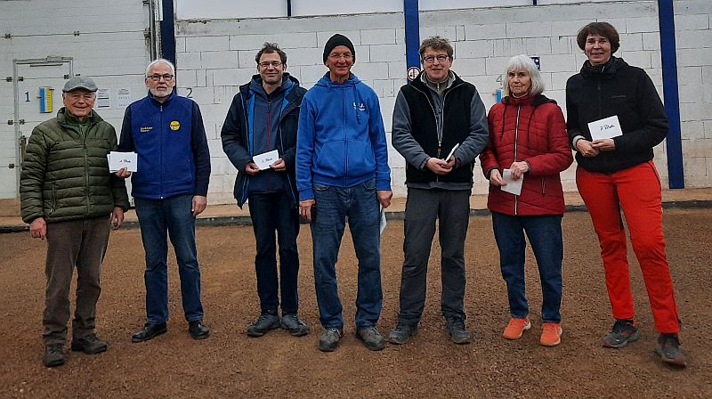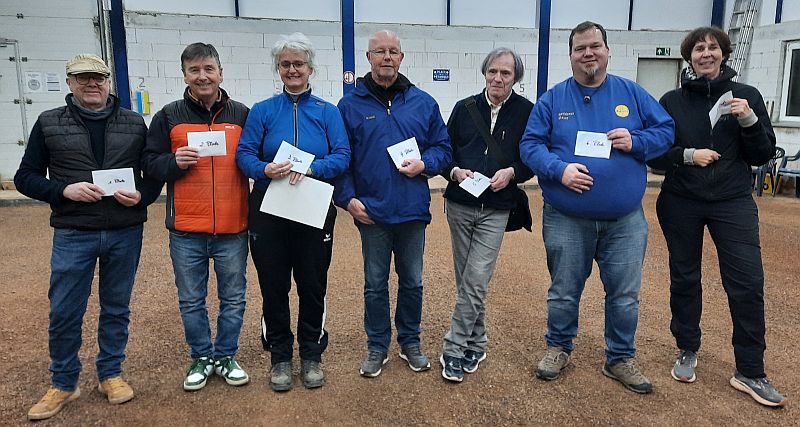 Und warum ist Hans Gumpert mit auf dem Foto (rechts)? Hans erhielt einen Sonderpreis für seine „nervigen“ letzten Kugeln. Er schaffte es die ganze Serie über immer wieder mit seiner letzten Kugel den Gegner zu „nerven“. Eine Leistung, die auch Anerkennung finden sollte. In der Gesamtrangliste belegt er den 8. Platz.